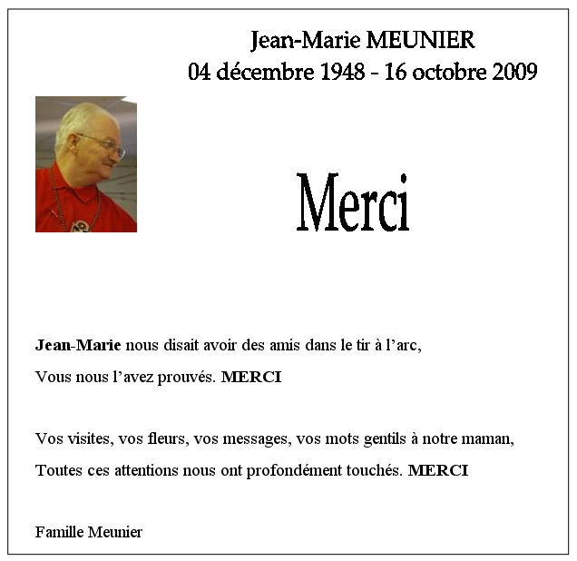 Remerciement de la famille Meunier