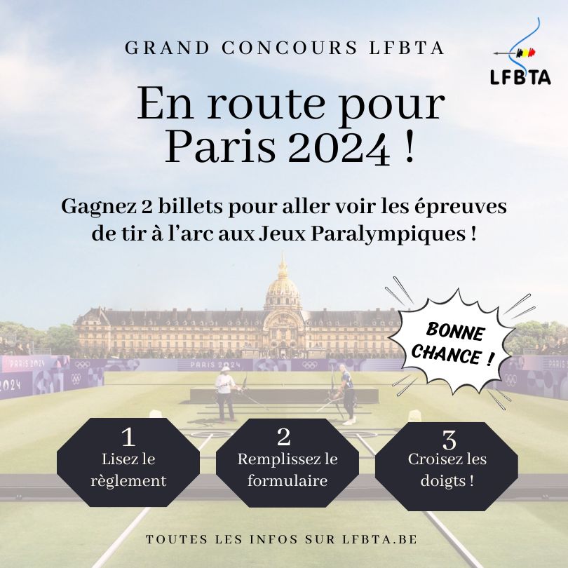 Ce règlement s’applique au concours «  En route pour Paris 2024  !  », organisé par la LFBTA (Ligue Francophone Belge de Tir à l’Arc). Ce règlement concerne les conditions de participations au concours et son déroulement. Le fait de participer au concours implique la pleine acceptation par le participant de toutes les conditions du règlement.