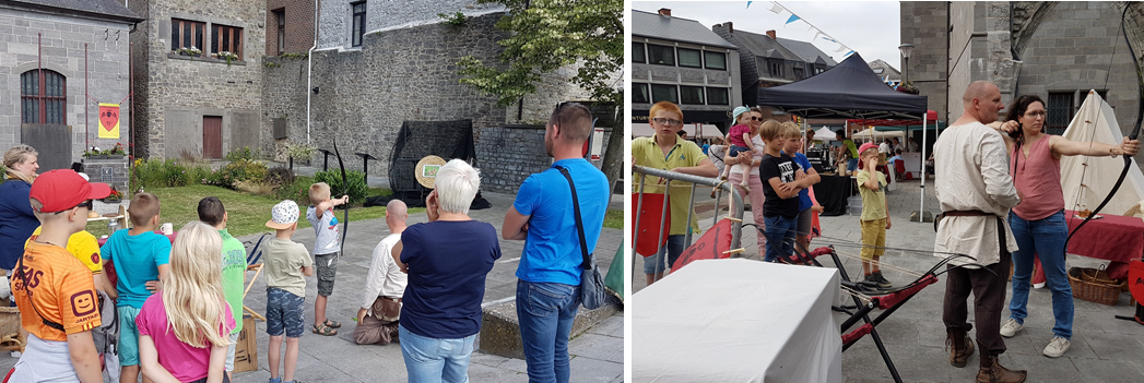 Lorsque nous ne faisons pas tirer à l’arc, nous ne manquons jamais d’attirer l’attention du public sur la pratique de l’arc au moyen-à¢ge. Mais ne nous cachons pas, le sujet du tir à l’arc contemporain vient très vite dans les propos.