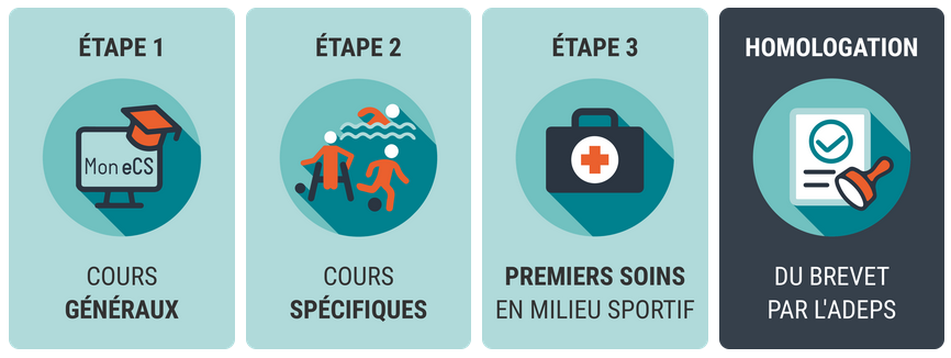 La formation Moniteur Sportif Initiateur comporte 4 étapes. Plus d’info sur le site de l’ADEPS.