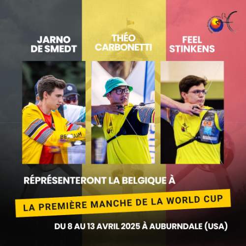 La Fédération est fière d’annoncer la composition de l’équipe nationale belge (Recurve Homme) qui participera à la première étape de la Hyundai Archery World Cup 2025, qui se déroulera à Auburndale, en Floride, du 8 au 13 avril.